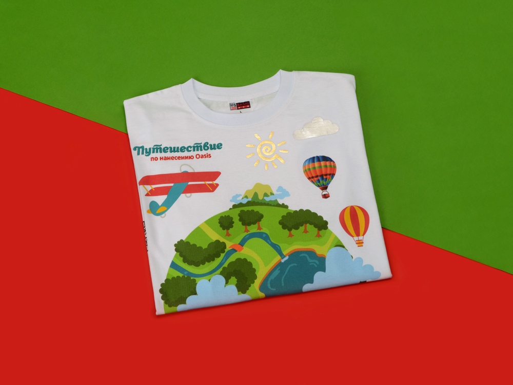 Зачем нужно огромное количество индивидуальных образцов, если можно посмотреть все виды нанесения на одной футболке? Благодаря нашему новому сету все виды нанесения на текстиль теперь у вас под рукой. Образец футболки демонстрирует 9 видов нанесения: от самых популярных, вышивки и текстильного принтера, до трафаретной печати с золотой фольгой и DTF.