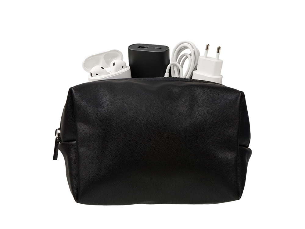 Этот универсальный органайзер из искусственной кожи станет незаменимым аксессуаром для всех ваших небольших электронных устройств. Он идеально подходит для хранения зарядных кабелей, беспроводных наушников, флеш-накопителей, съемных жестких дисков, пауэрбенков или портативного Wi-Fi роутера. Прочная искусственная кожа обеспечивает долговечность и защиту, а компактный размер позволяет взять его куда угодно. Практичное и стильное решение для тех, кто ценит минимализм и функциональность.
