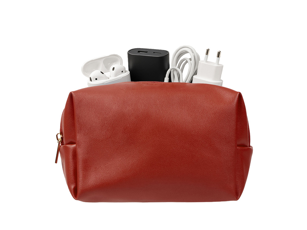 Этот универсальный органайзер из искусственной кожи станет незаменимым аксессуаром для всех ваших небольших электронных устройств. Он идеально подходит для хранения зарядных кабелей, беспроводных наушников, флеш-накопителей, съемных жестких дисков, пауэрбенков или портативного Wi-Fi роутера. Прочная искусственная кожа обеспечивает долговечность и защиту, а компактный размер позволяет взять его куда угодно. Практичное и стильное решение для тех, кто ценит минимализм и функциональность.
