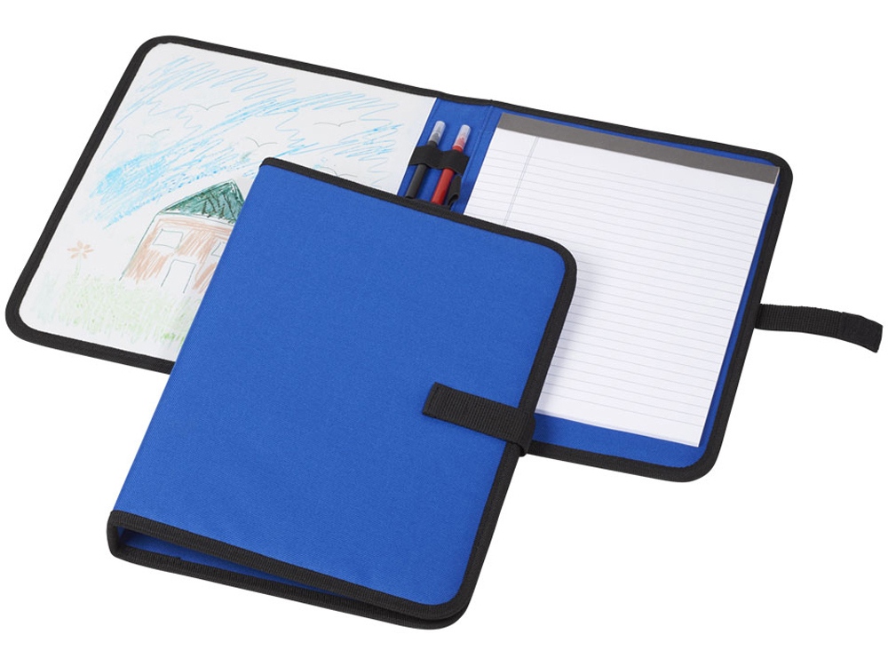 Папка Veela A4. Папка A4 с текстильной застежкой. Включает блокнот с 30 страницами линованной бумаги и доску. В комплект входят маркеры и салфетки. Полиэстер 600D.