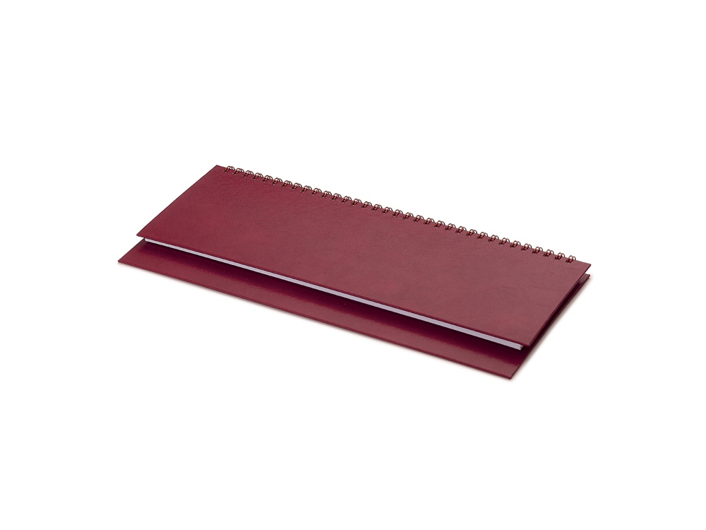 Недатированный планинг на гребне, цвет бордовый, твердый переплет, 128 страниц. Плотность бумаги 70 грамм высшего сорта. Печать в 2 краски.
