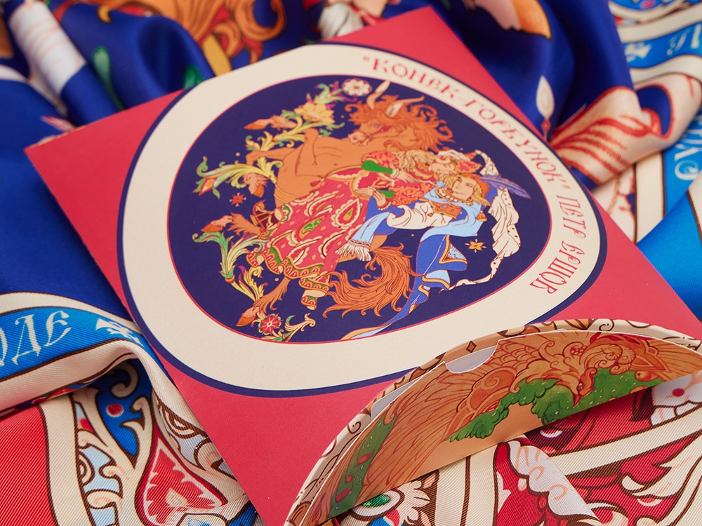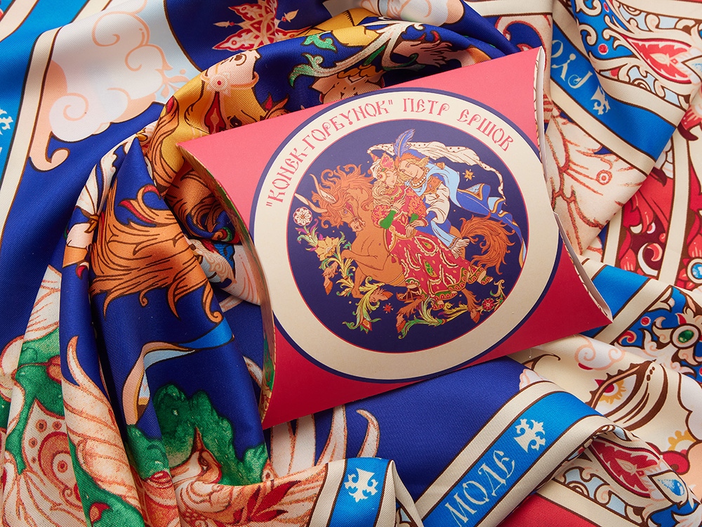 Прочитав сказку юного дарования, сам великий Александр Сергеевич Пушкин сказал: Этот род сочинений я могу теперь оставить – и Петр Ершов был принят в круг петербургских писателей.В этом году сказке из золотого фонда русской литературы, переведенной на все языки мира, исполняется 185 лет. Ее яркие краски мы перенесли на шелк и создали платок Конек-Горбунок.