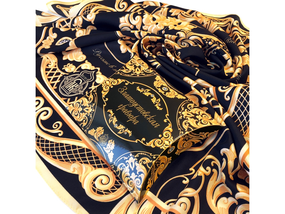 Платок Златоуствоская гравюра от бренда Русские в моде — это роскошь, изящество и характер, оригинальный аксессуар и настроение праздника, который всегда с Вами.