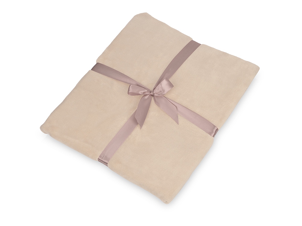 Плед флисовый Natty из переработанного пластика, бежевый с розовой лентой