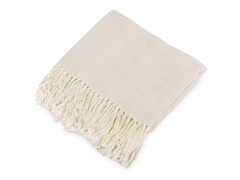 Плотный плед из натурального хлопка с бахромой по бокам. Можно использовать как одеяло или как покрывало для украшения интерьера.