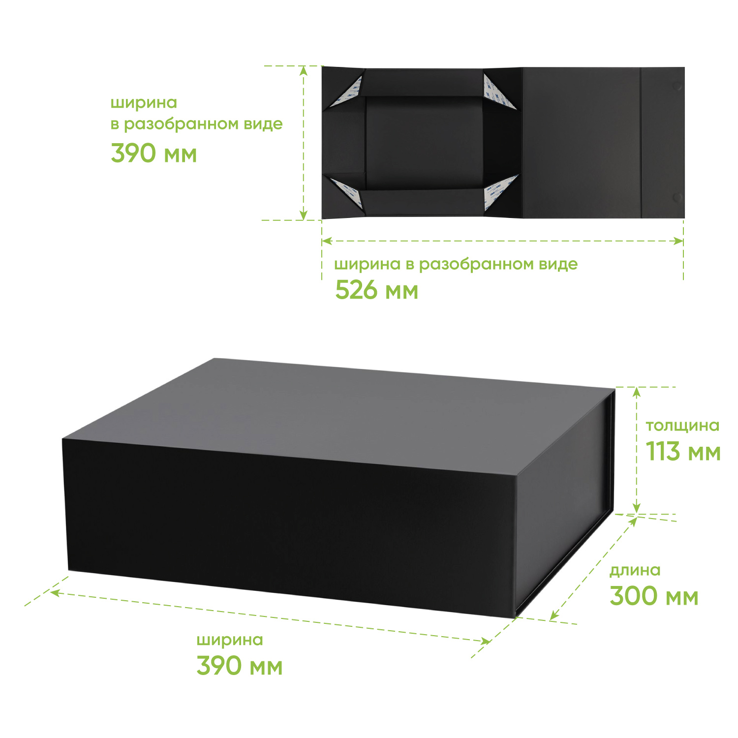Главная / Подарочная упаковка / Подарочная упаковка гибкая / Подарочная коробка-трансформер большая, черная