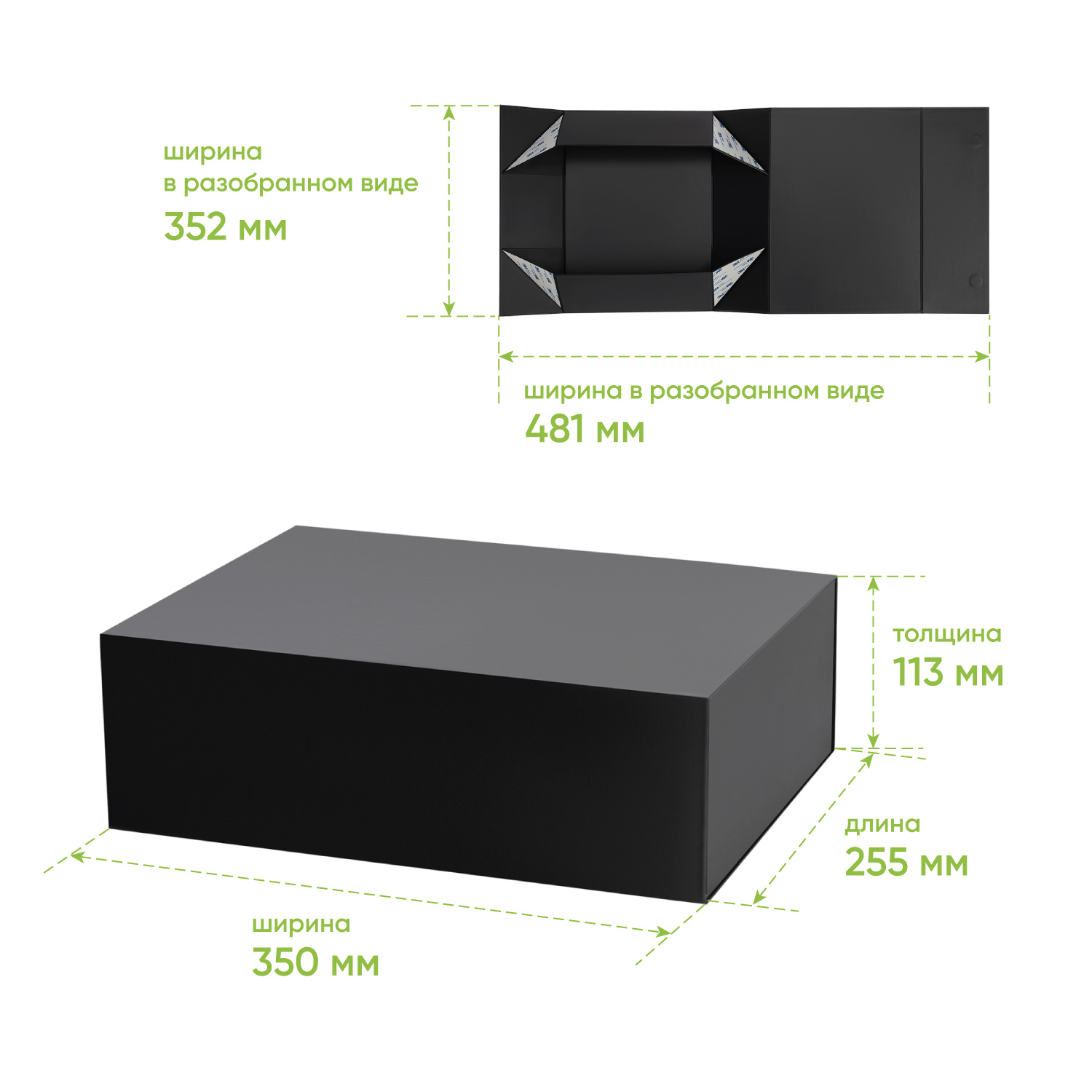 Идеальные размеры для оформления подарочных и брендовых наборов. Простая и надежная сборка без лишних усилий. В сложенном виде коробка занимает минимум места, что значительно сокращает расходы на хранение и логистику.