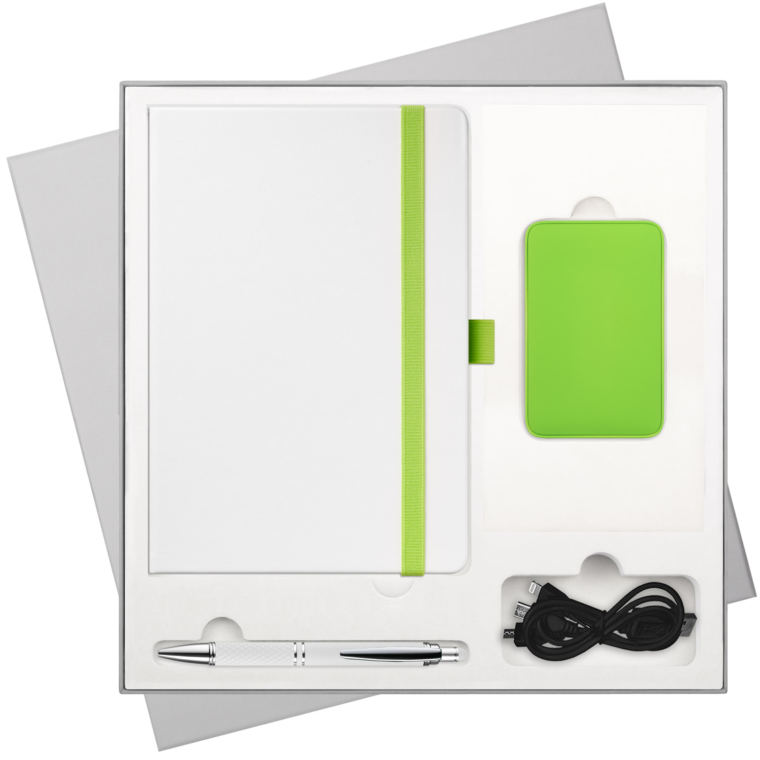 Подарочный набор Arctic, белый/салатовый (ежедневник, ручка, аккумулятор)