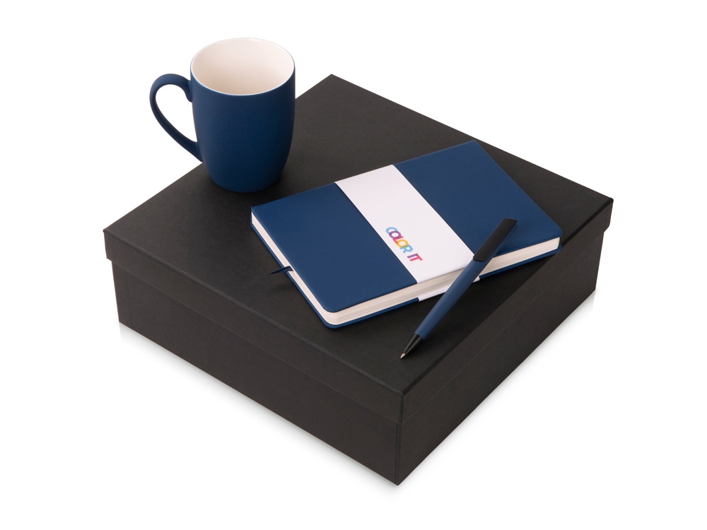 Подарочный набор c блокнотом C2, ручкой и кружкой, темно-синий