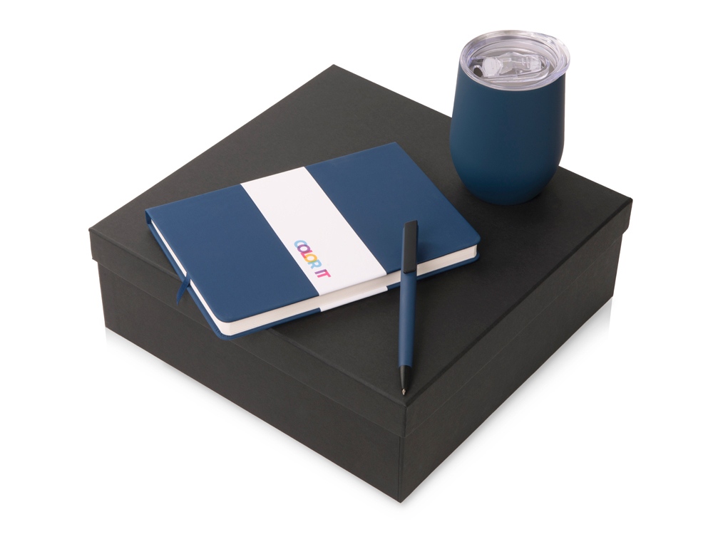 Подарочный набор c блокнотом C2, ручкой и термокружкой, темно-синий