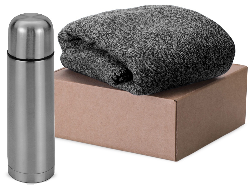 Подарочный набор Calmy с термосом и пледом, серый