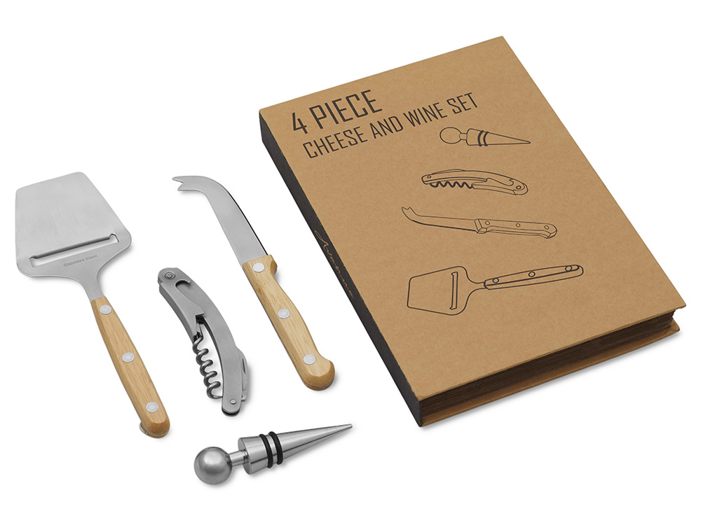 Подарочный набор для вина и сыра Reze из 4 предметов, натуральный