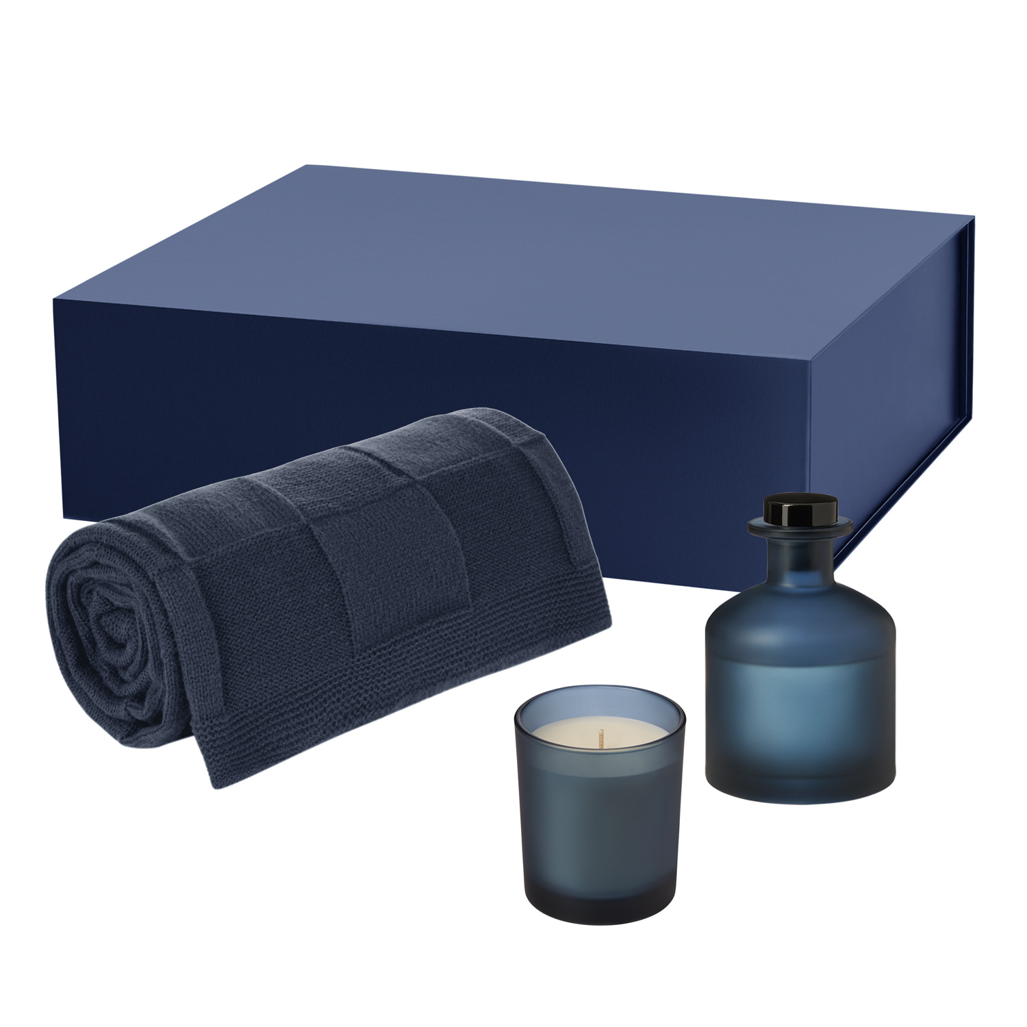 Подарочный набор Enigma, Cella Soft, синий (свеча, диффузор, плед)