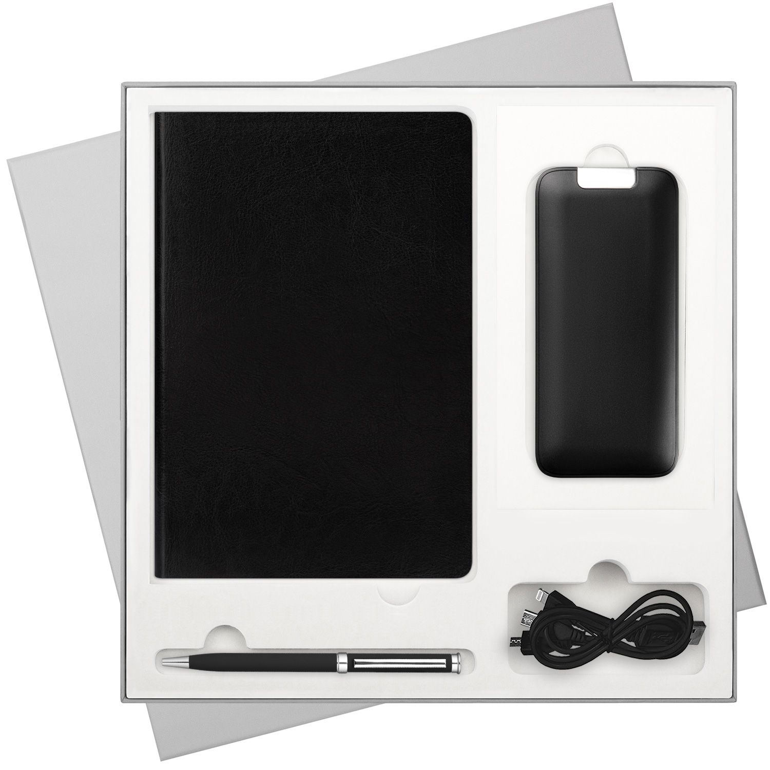 Подарочный набор River side, черный/красный (ежедневник, ручка, аккумулятор)
