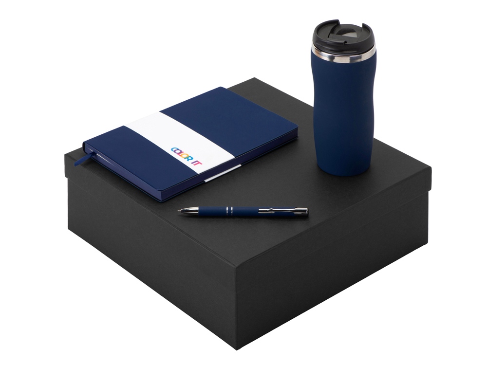 Подарочный набор с блокнотом С1, металлической ручкой и термокружкой, темно-синий
