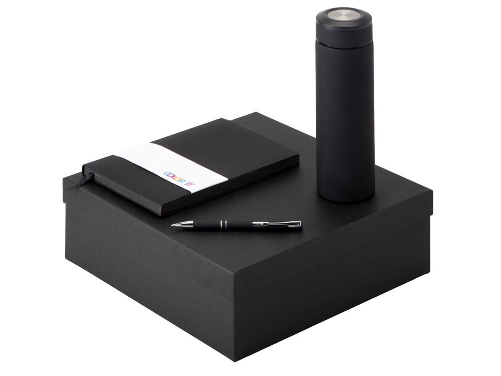 Подарочный набор с блокнотом С1, металлической ручкой и термосом, черный
