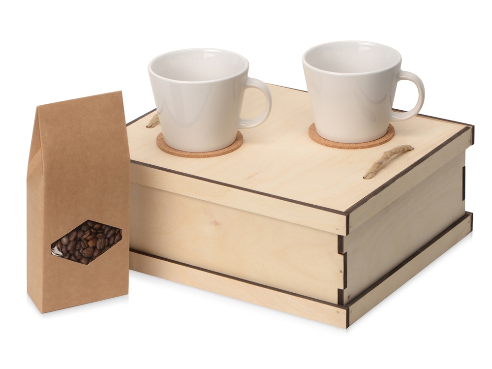 Подарочный набор с кофе, чашками в деревянной коробке Кофебрейк