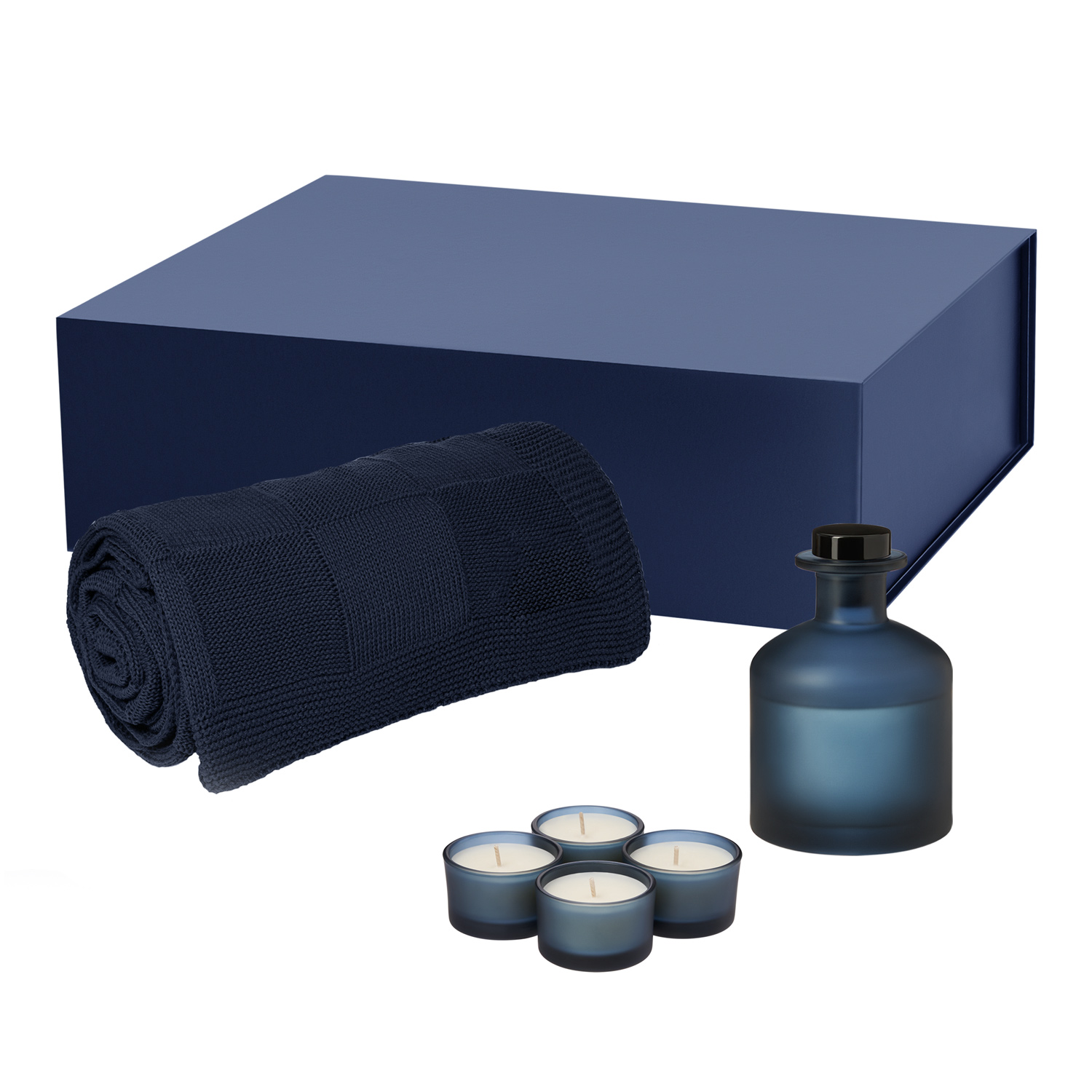 Подарочный набор Sento, Cella, синий (свеча, диффузор, плед)