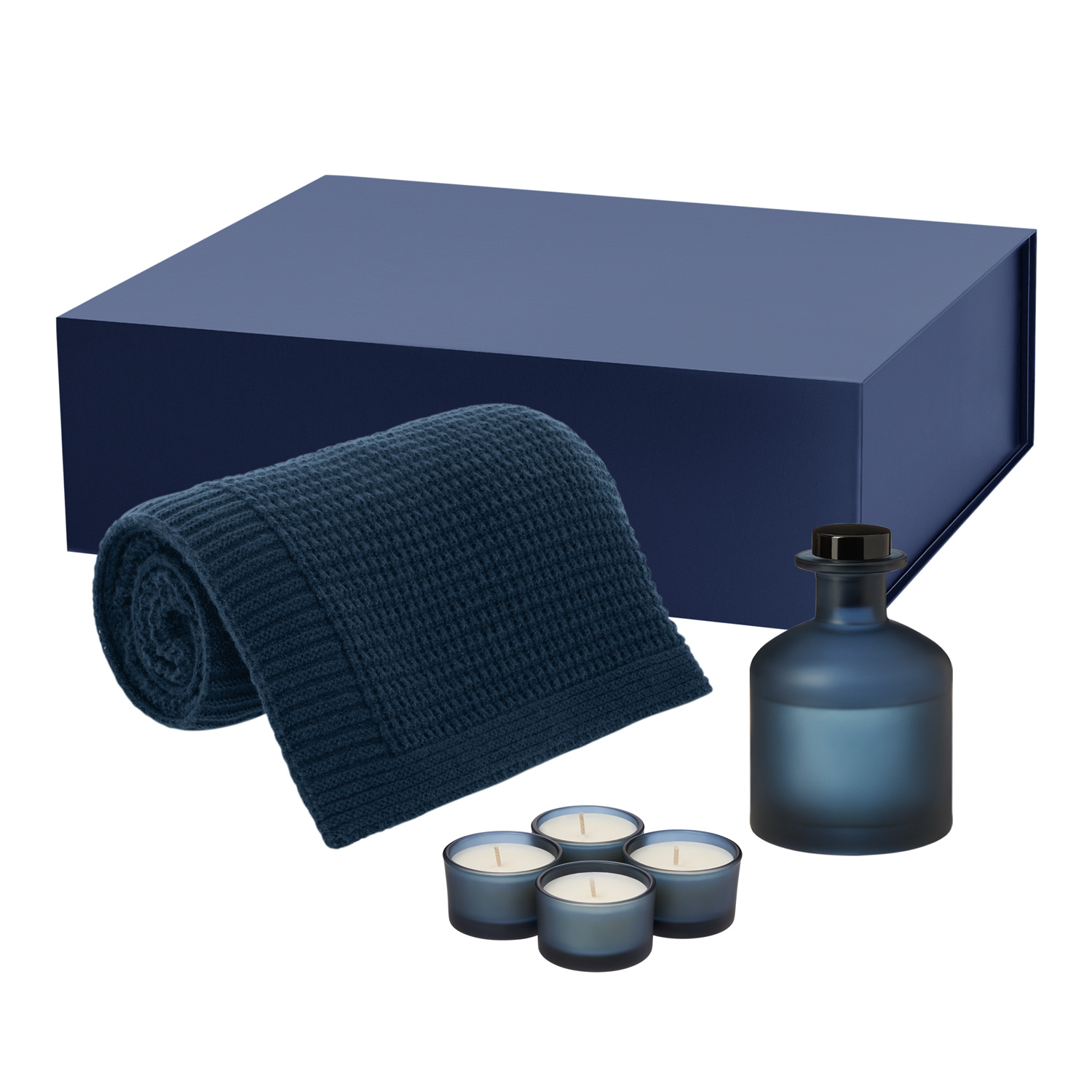 Подарочный набор Sento, Malta Soft, синий (свеча, диффузор, плед)