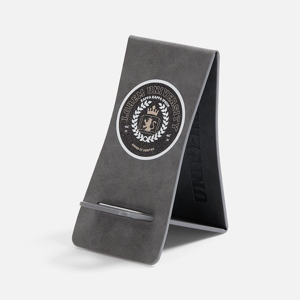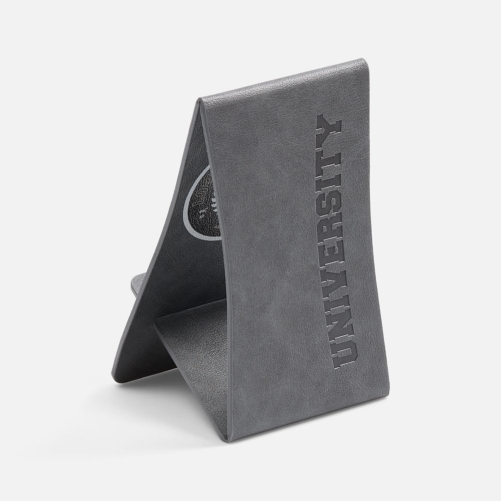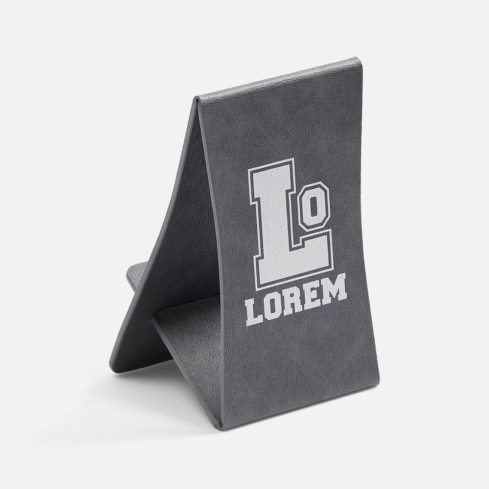 Складная подставка для телефона с вырубкой под шнур зарядного устройства. Выполнена из материала Petrus.
