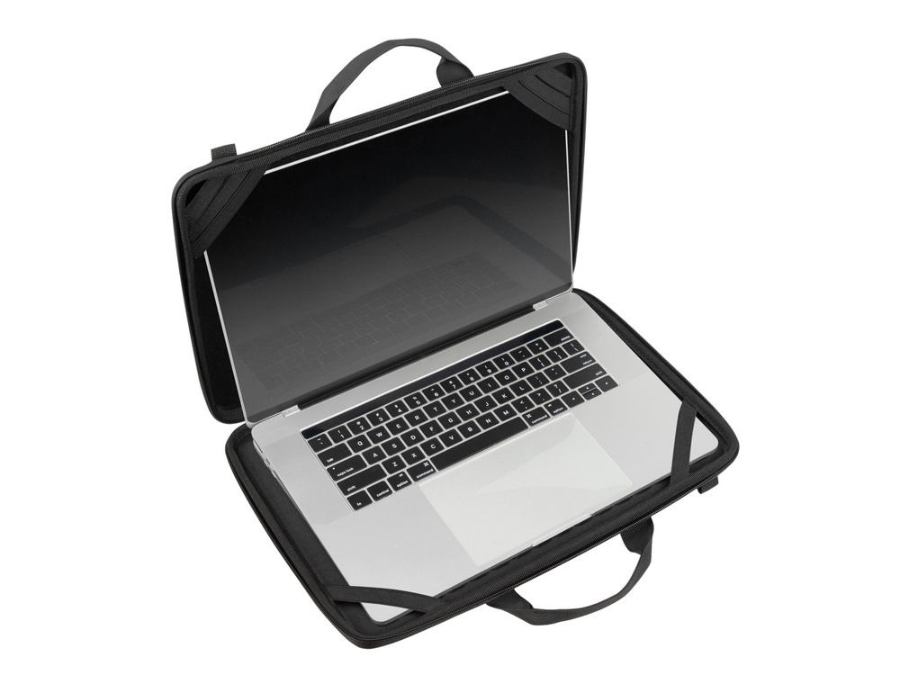 • Ноутбук надежно крепится внутри чехла специальными фиксирующими лентами по углам.