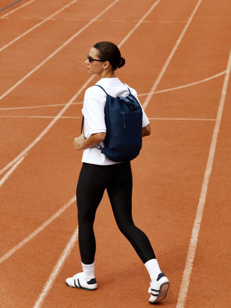 Компактный рюкзак с карманом, регулируемыми лямками и стильной ручкой-петлей. Подходит для повседневного использования: удобно носить спортивную форму или необходимые на прогулке мелочи.