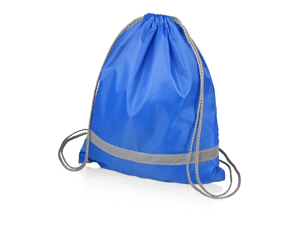 Рюкзак-мешок со светоотражающей полосой и серыми шнурками.