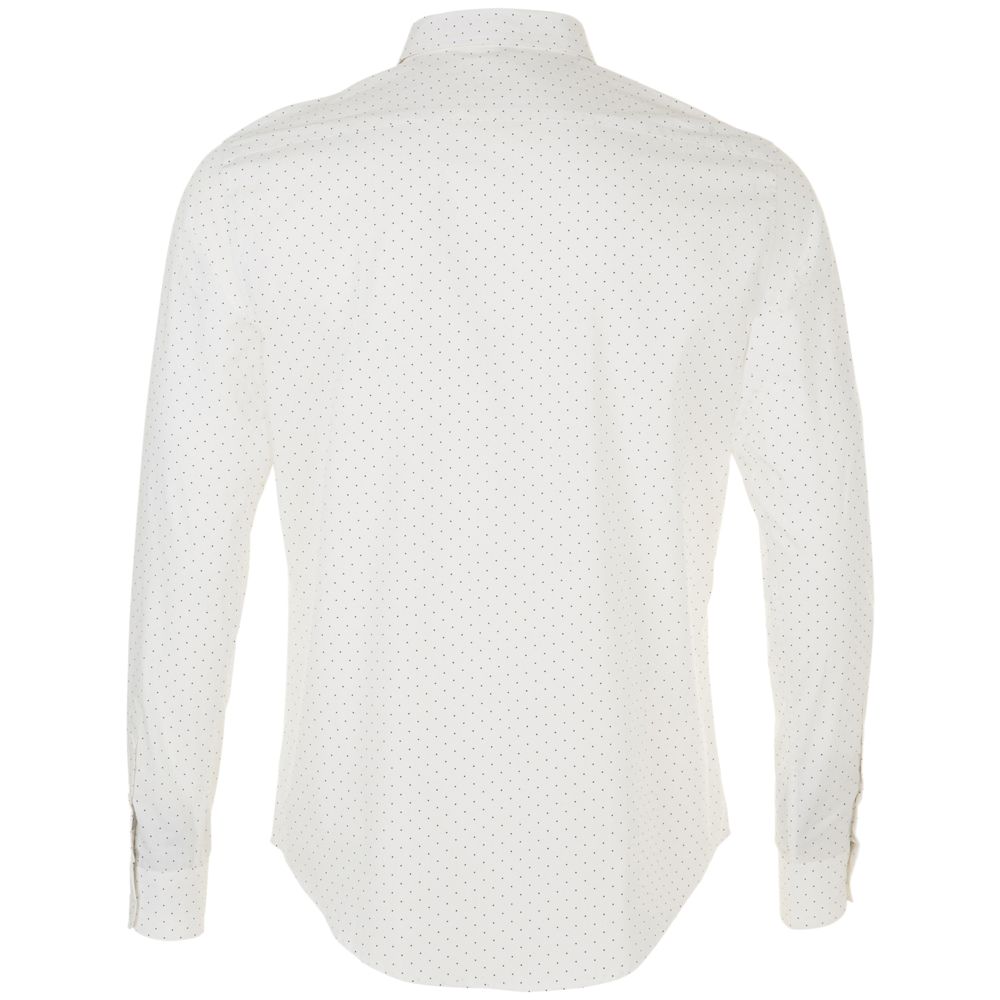 Модная рубашка с печатным рисунком в горошек, которая прекрасно впишется в современный корпоративный стиль.Облегающая модель с маленьким классическим воротничком, планкой с 7 пуговицами тон в тон и манжетами на 1 пуговице с разрезом «капуцин».