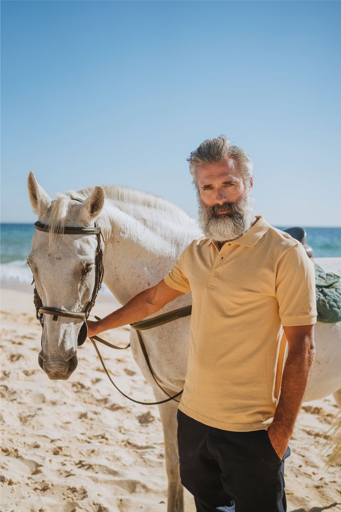 Мужская рубашка поло прямого силуэта с разрезами по бокам.