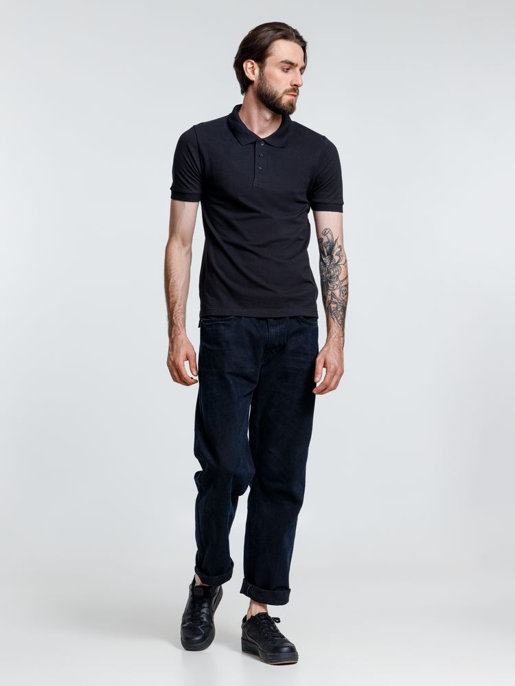 Мужская рубашка поло прямого силуэта с разрезами по бокам.