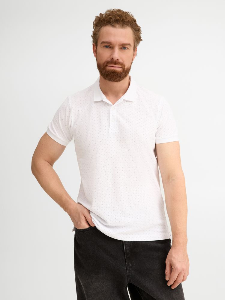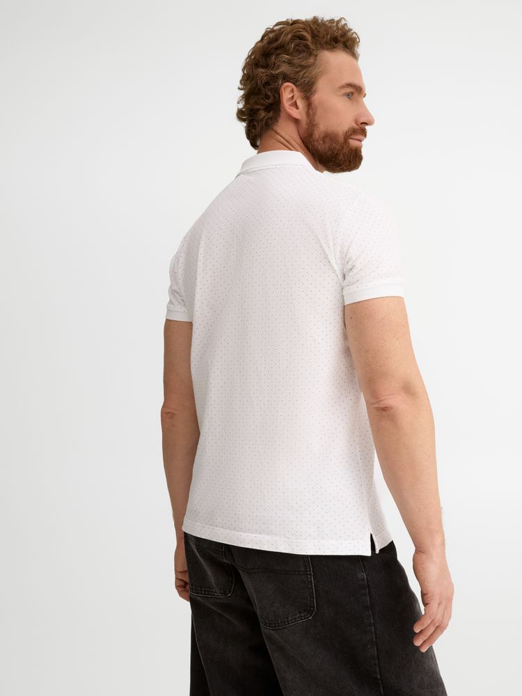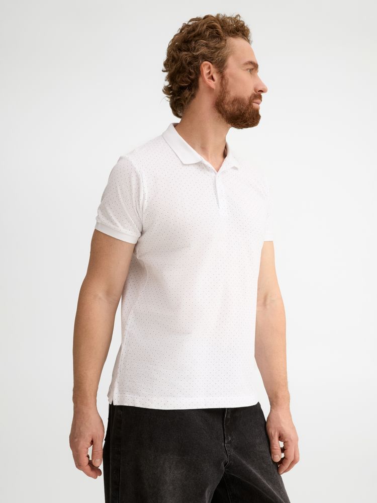 Рубашка поло приталенного силуэта с рисунком в точку. Лейбл производителя в боковом шве изнутри, в шве горловины — только бирка с размером, что позволяет вам нанести свой логотип.