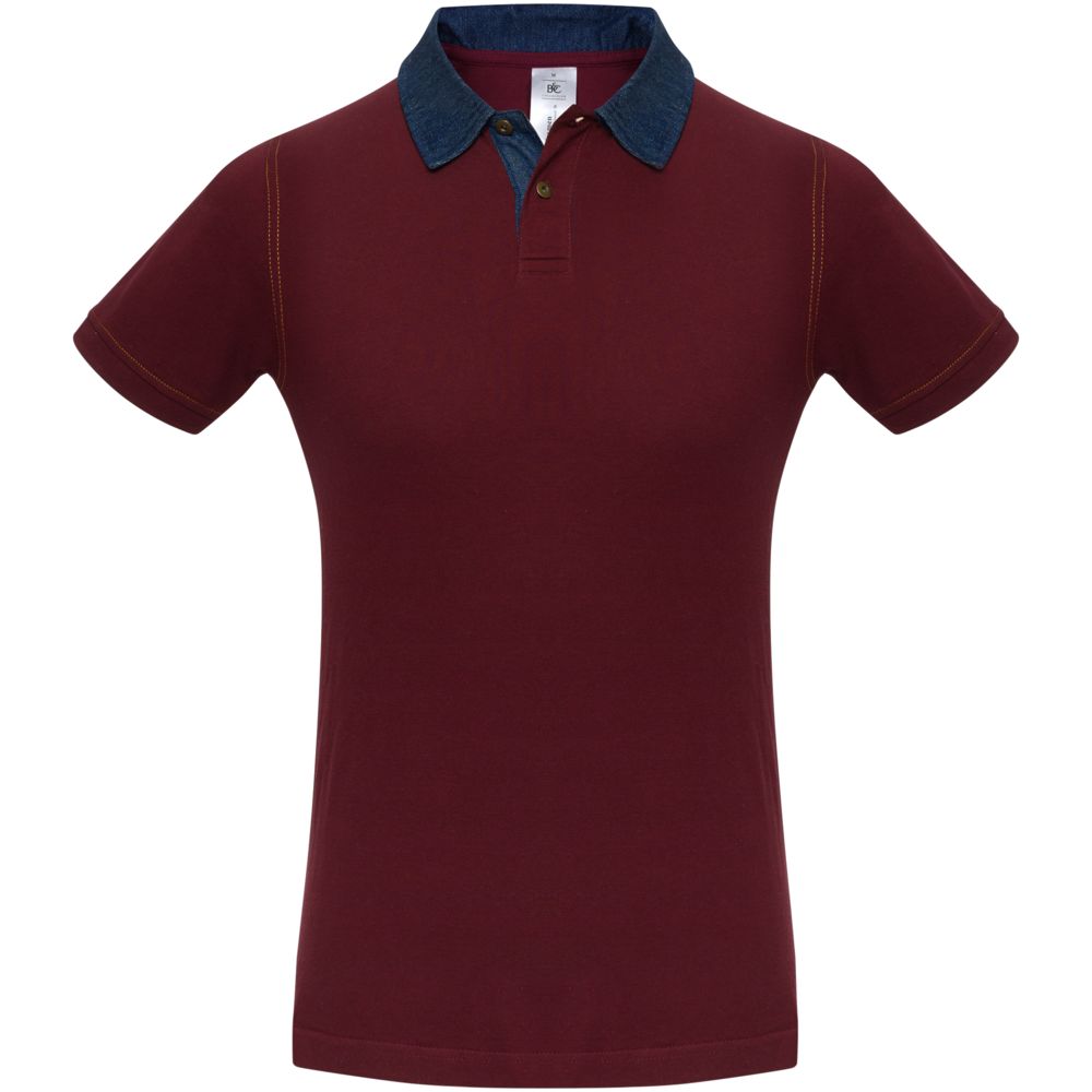Рубашка поло с джинсовым воротником и контрастной отстрочкой.