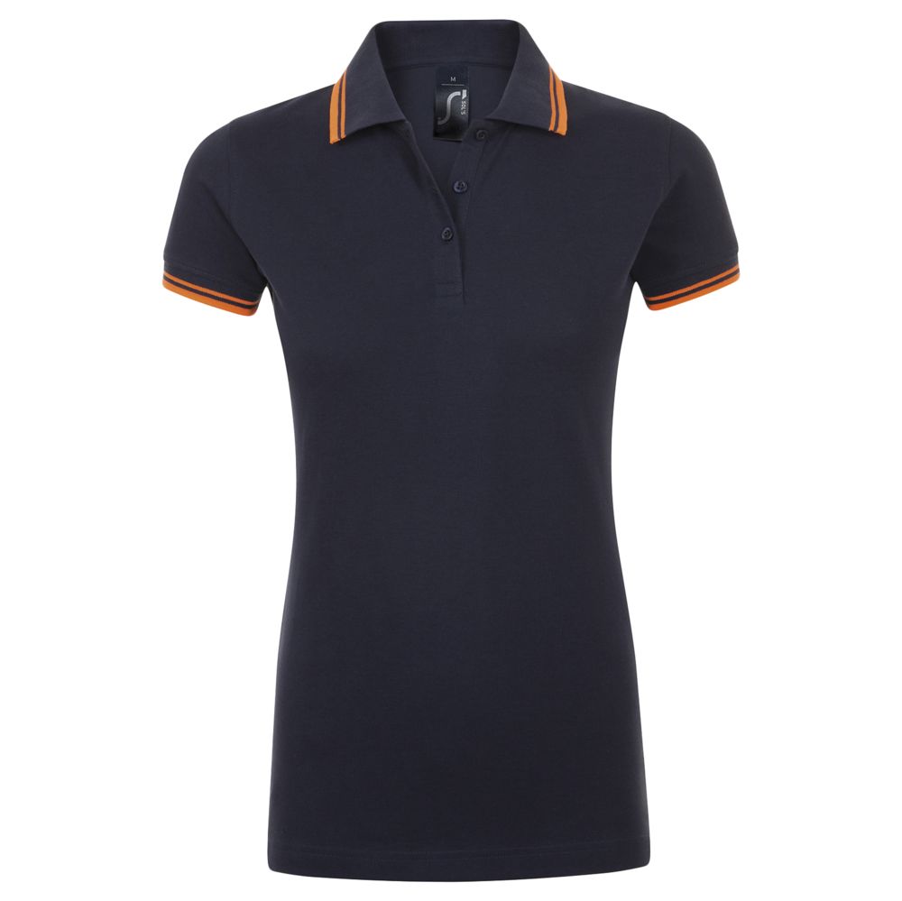 Рубашка поло женская Pasadena Women 200 с контрастной отделкой, темно-синяя (navy) с неоново-оранжевым