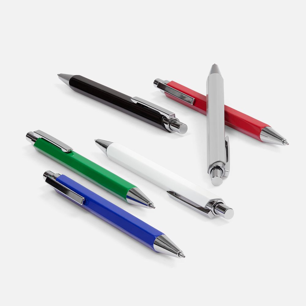 Категория: Металлические ручки с логотипомМеталлическая шариковая ручка в глянцевом шестигранном корпусе с хромированными деталями.