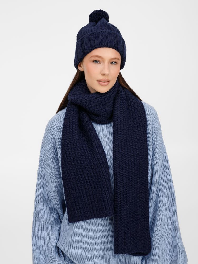 Однослойная шапка Frissonelle из полушерстяной пряжи рельефной вязки сохраняет тепло без лишней тяжести. Эластичный отворот мягко фиксирует шапку, не сдавливая голову, а пышный помпон добавляет лаконичный очаровательный акцент, завершая образ. Эта модель станет верным спутником для городских прогулок в любую погоду.