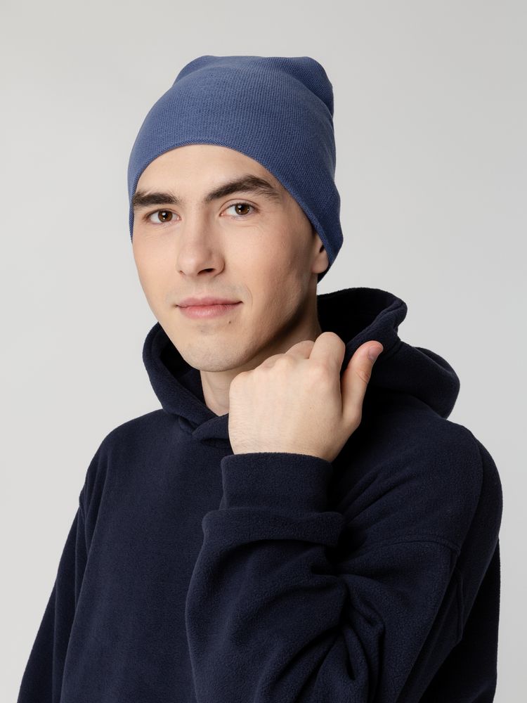 Двухслойная шапка-бини тонкой вязки, которую можно носить как с подворотом, так и без.