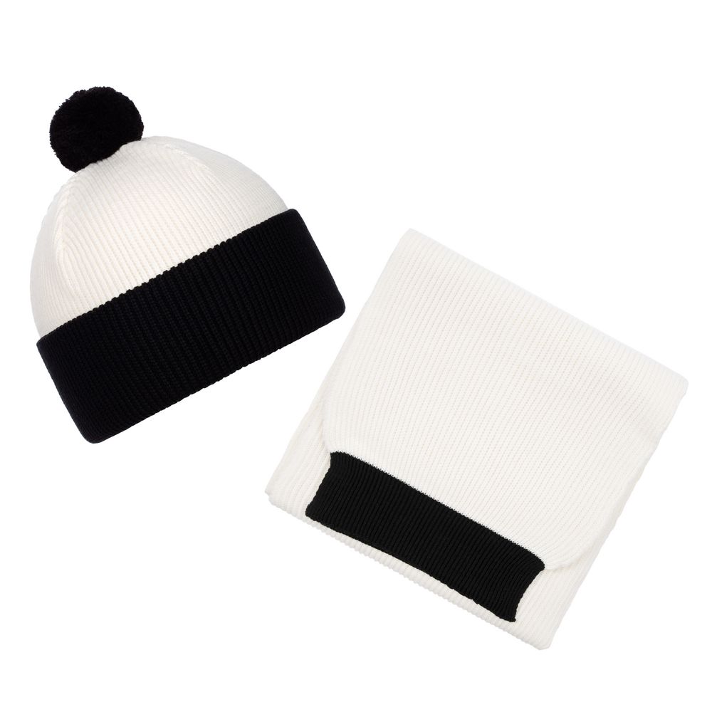 Двуслойная шапка фактурной вязки с контрастным подворотом и помпоном.