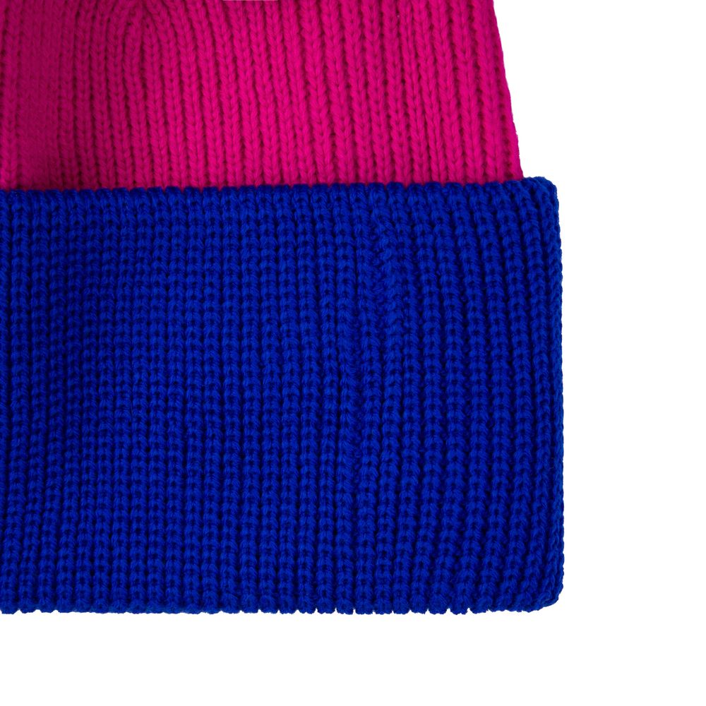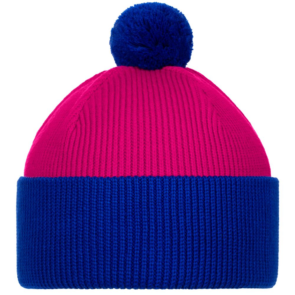 Двуслойная шапка фактурной вязки с контрастным подворотом и помпоном.