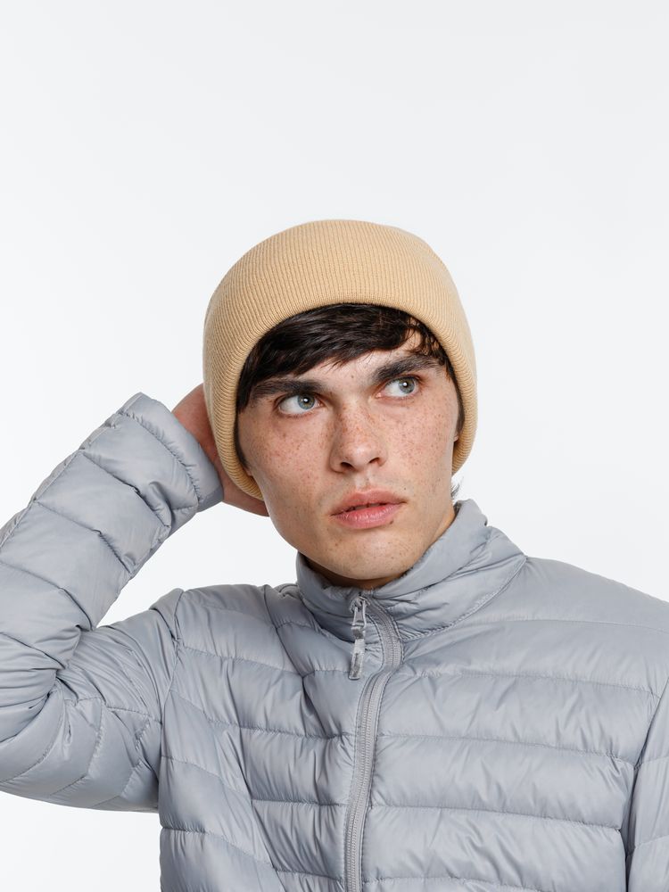 Двухслойная шапка из акриловой пряжи с регулируемым отворотом 7–10 см.