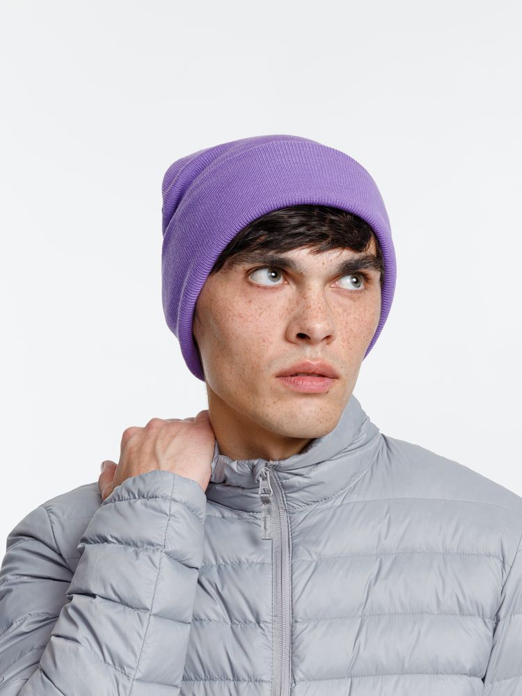 Двухслойная шапка из акриловой пряжи с регулируемым отворотом 7–10 см.