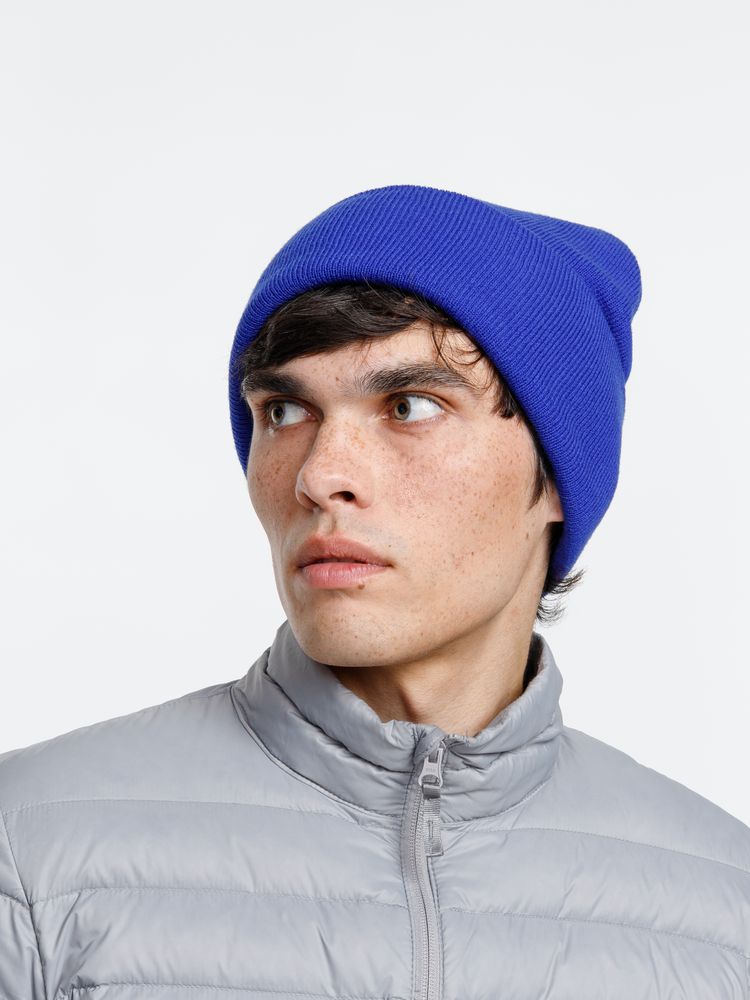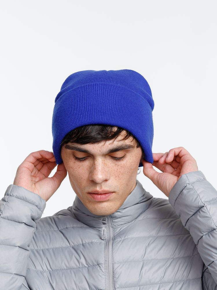 Двухслойная шапка из акриловой пряжи с регулируемым отворотом 7–10 см.