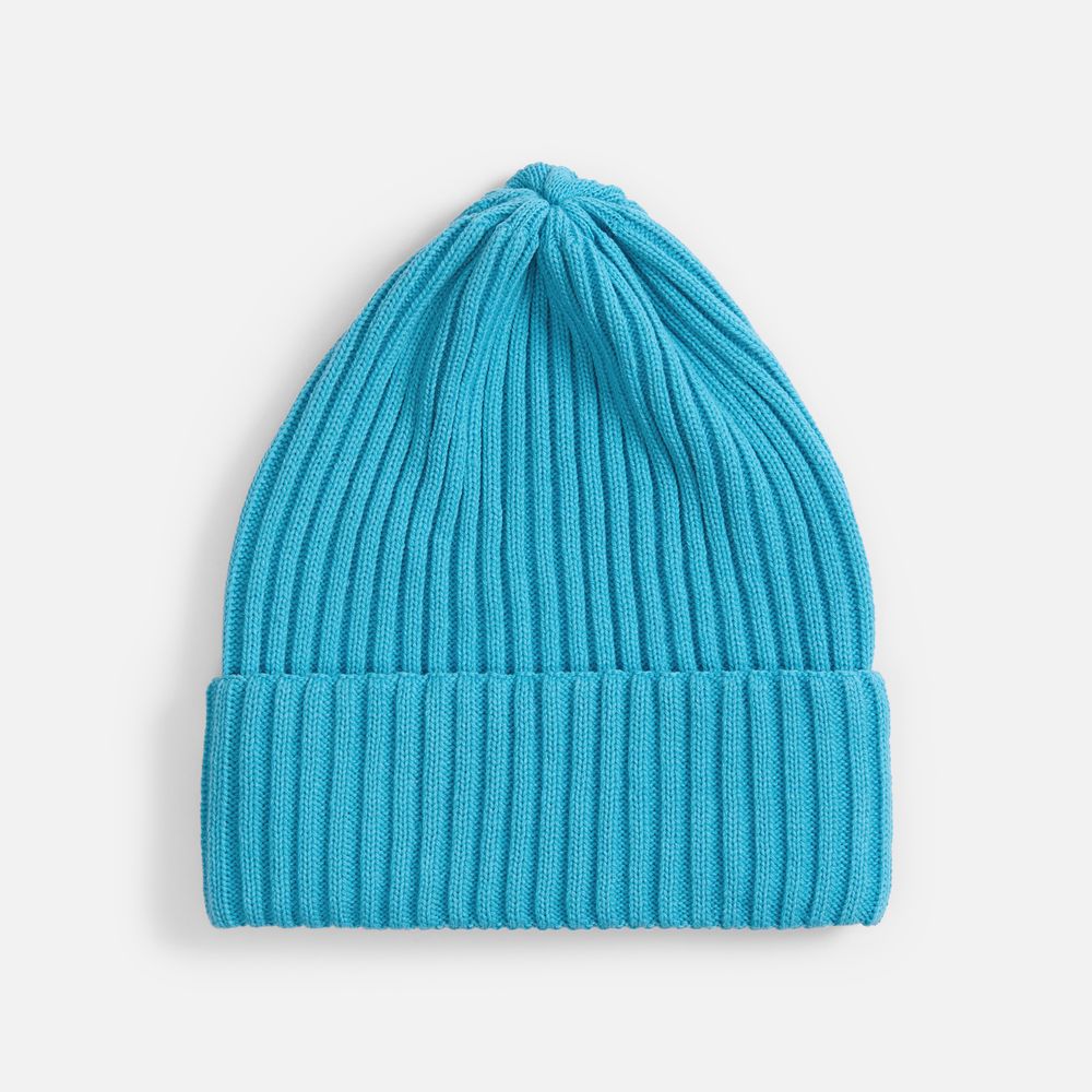 Однослойная шапка фактурной вязки с двойным отворотом.