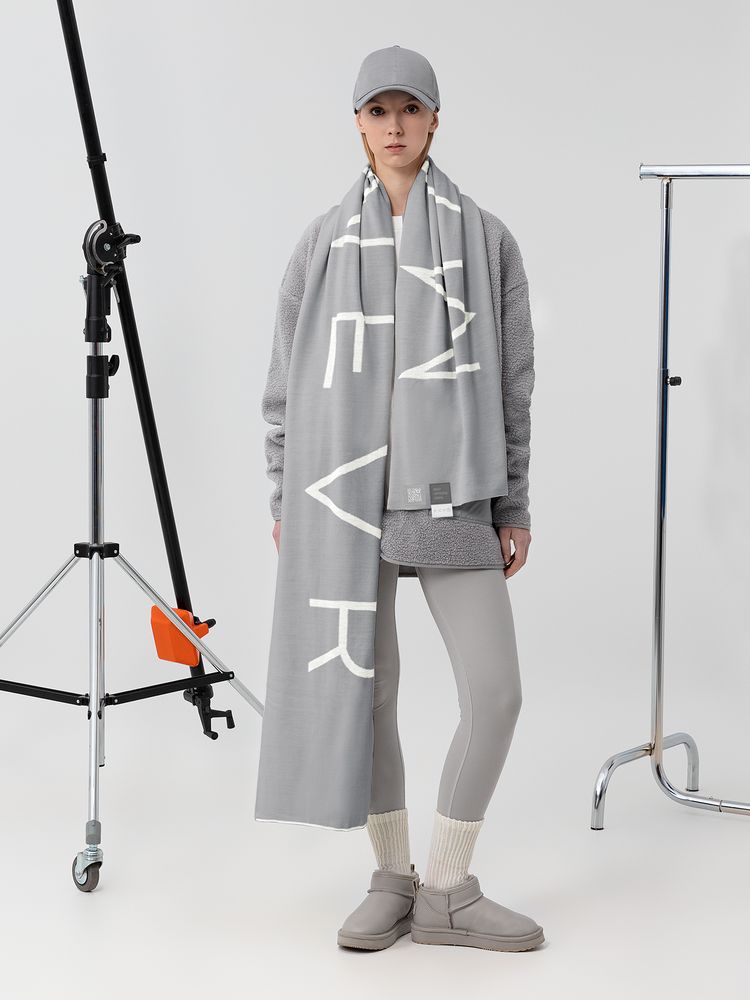 Двухцветный длинный шарф Bereg открывает дополнительное пространство для маневра. Можно добавить в образ стиля, просто накинув шарф на шею или обернув вокруг нее один раз, оставив свободными спереди оба конца с контрастной надписью.