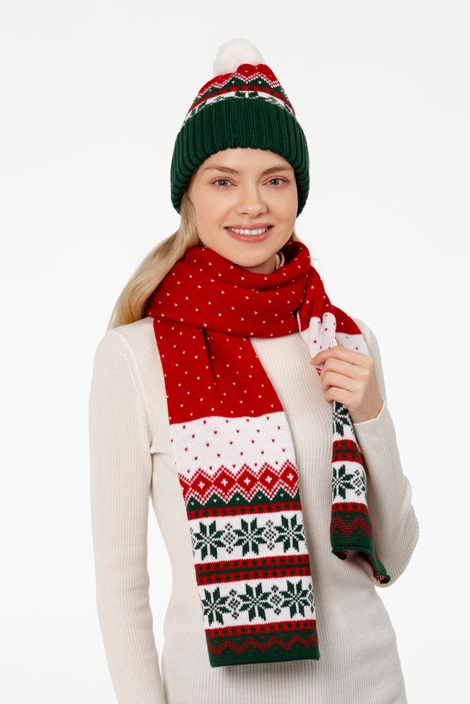 Шарф Happy View — это настроение волшебных рождественских фильмов, переданное через традиционный орнамент и классическое сочетание цветов.