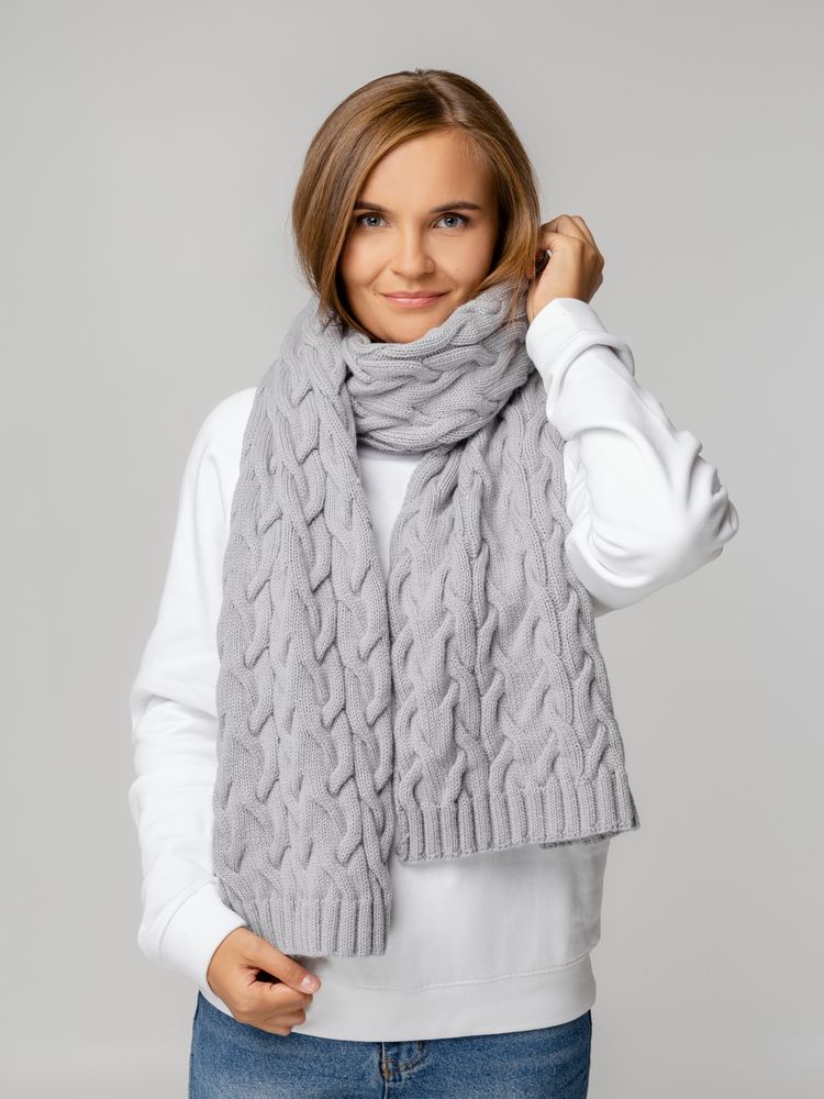 Длинный фактурный шарф — классика, которая не устаревает. Такая модель добавит уюта и шарма в зимний образ, станет его притягательным акцентом.