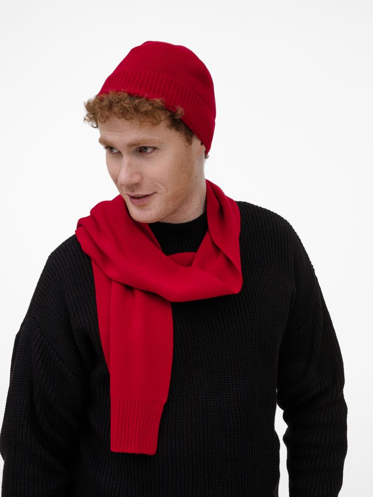 Классический однослойный шарф гладкой вязки. Края, связанные резинкой, придают изделию завершенный и аккуратный вид.