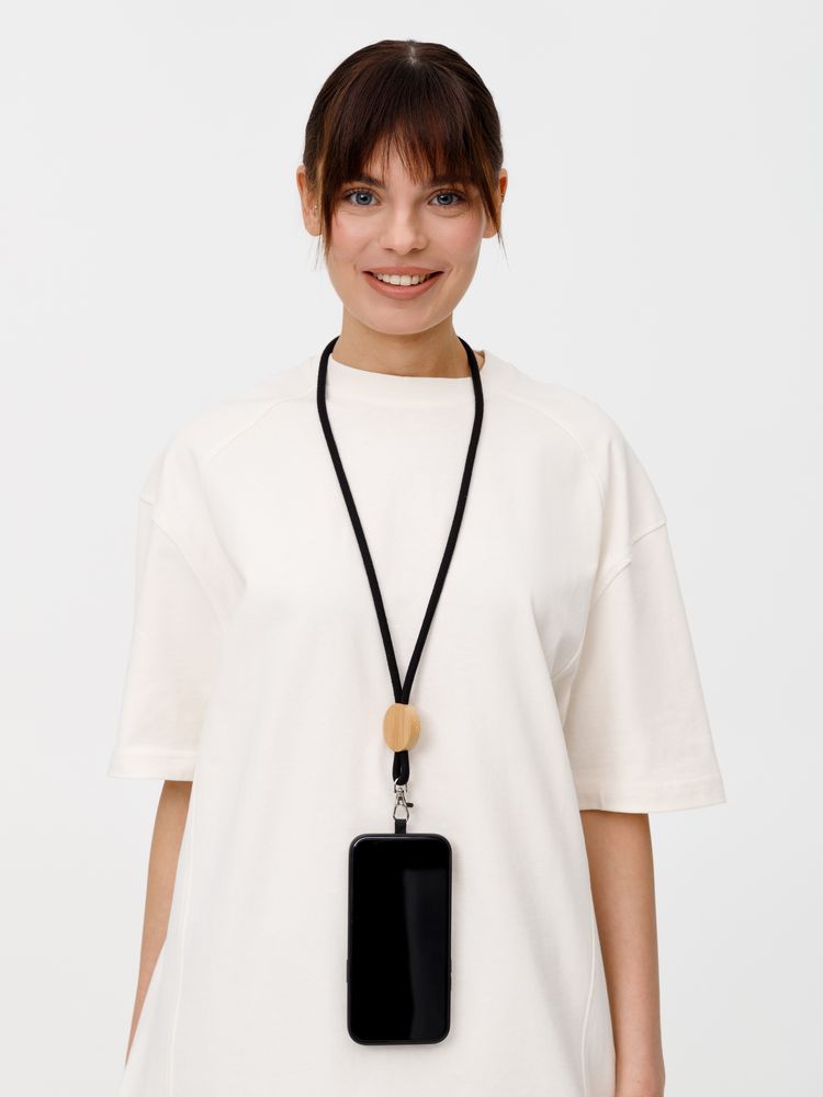 Шнурок для бейджа Tube Wood, черный