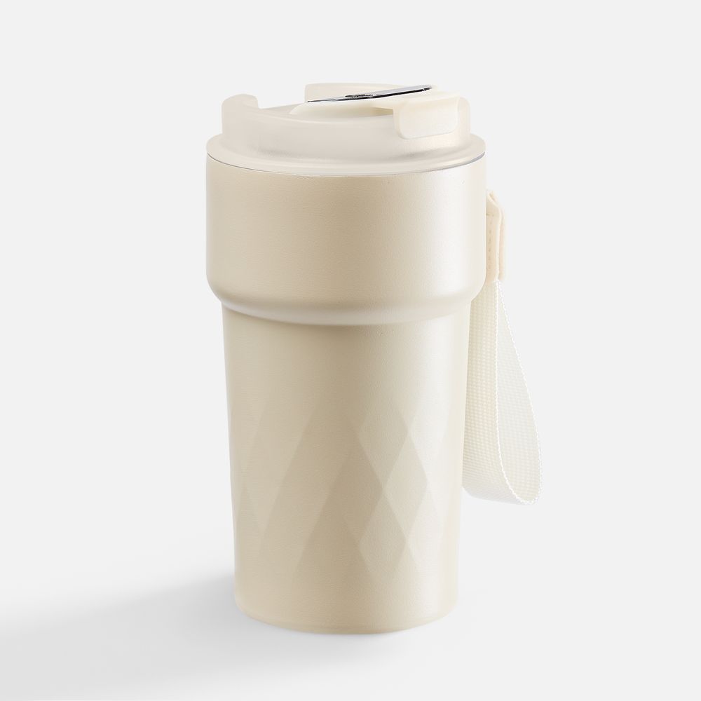 Смарт-термостакан в металлическом корпусе с легким рельефом.