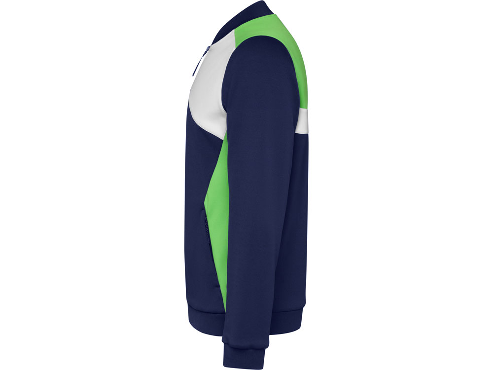 Спортивная куртка на молнии. Боковые карманы закрываются на молнию. Воротник, манжеты и низ из риба 1х1. Ассиметричная левая сторона спроектирована специально для вышивки. Может быть с комбинирована с брюками Rhodes.