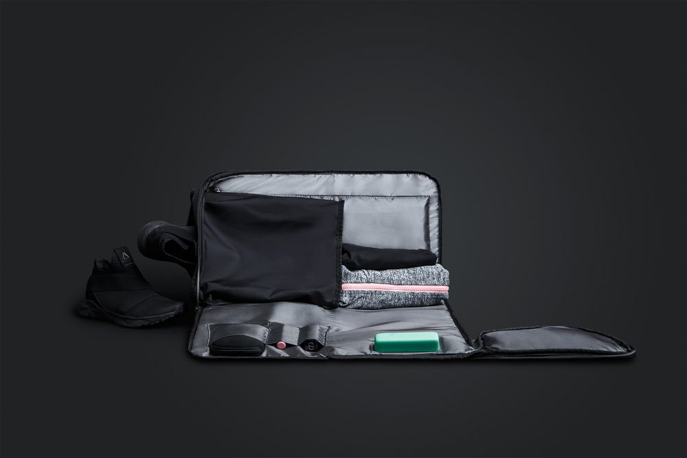 Благодаря единой молнии, идущей по всей сумке, она складывается в пришитый чехол, поэтому не займет много места в багаже или в шкафу.